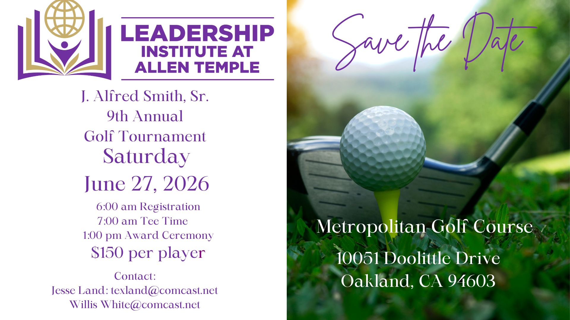 Join us for the 10th Annual J. Alfred Smith, Sr. Golf Tournament—a day of friendly competition, community connection, and spirited fun on the green. Download the flyer for more details.